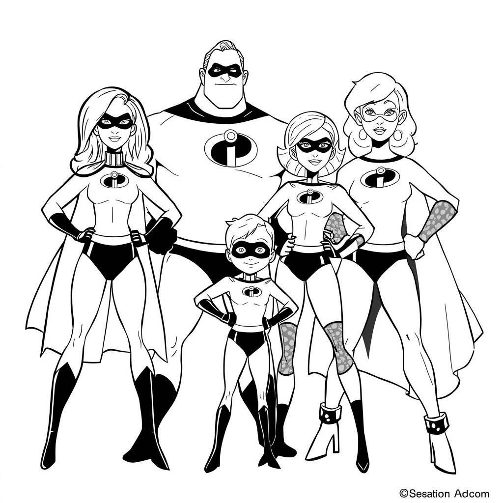 No emocionante mundo de “Os Incríveis”, a família Parr se une para enfrentar desafios e proteger a cidade de supervilões. Neste desenho para colorir, você pode ver a família em suas icônicas roupas de super-heróis, prontos para a ação. Enquanto o Sr. Incrível exibe sua força, a Mulher-Elástica demonstra sua flexibilidade, e os jovens Violeta e Flecha mostram que também têm superpoderes. Cada personagem traz uma energia única, e a imagem capturada é perfeita para estimular a criatividade das crianças enquanto colorirem.