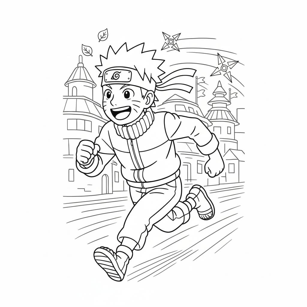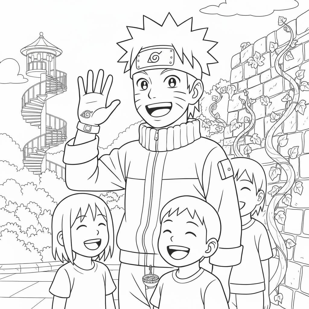 Página de colorir do Naruto com seus amigos, perfeita para fãs da série.