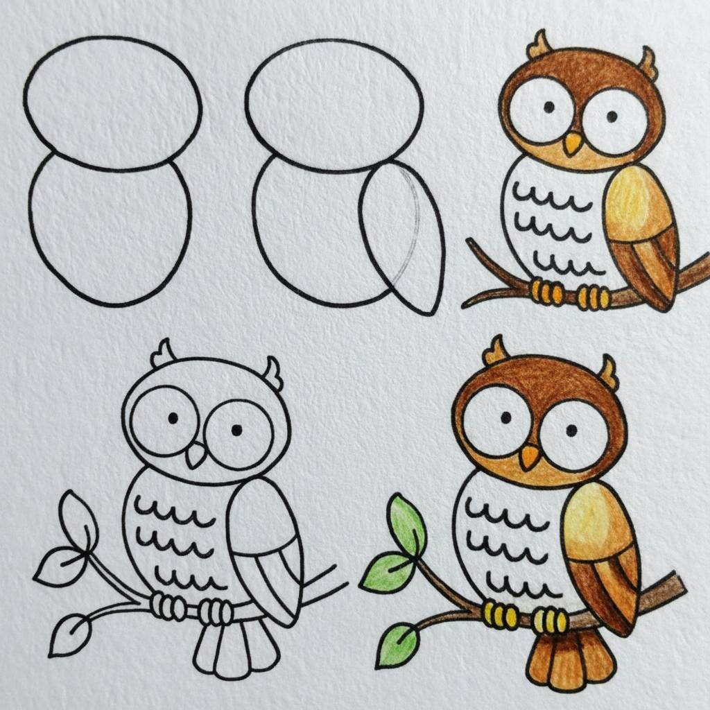 Desenho Fácil: Coruja simpática para colorir