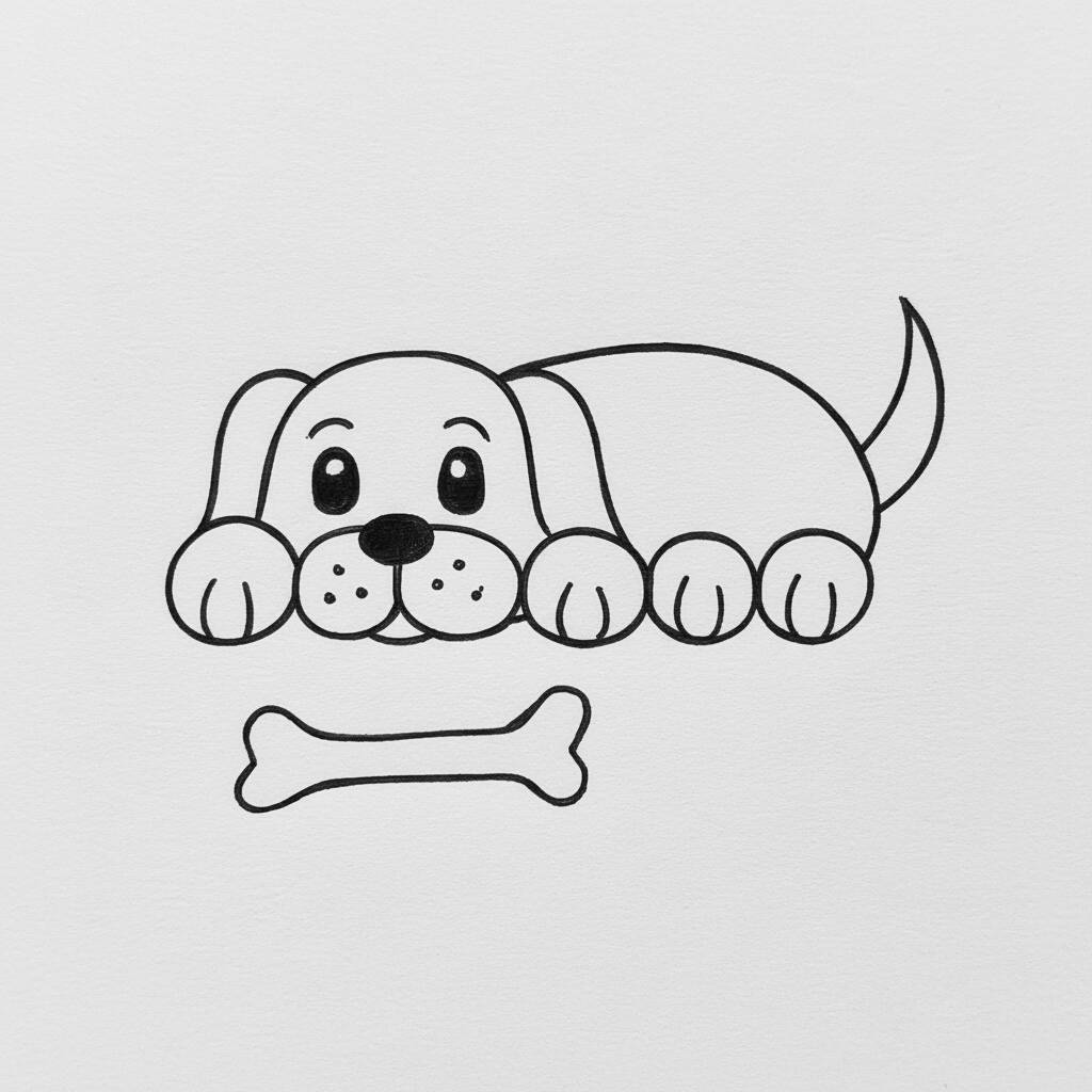 Desenho Fácil: desenho de um cachorro com osso fácil