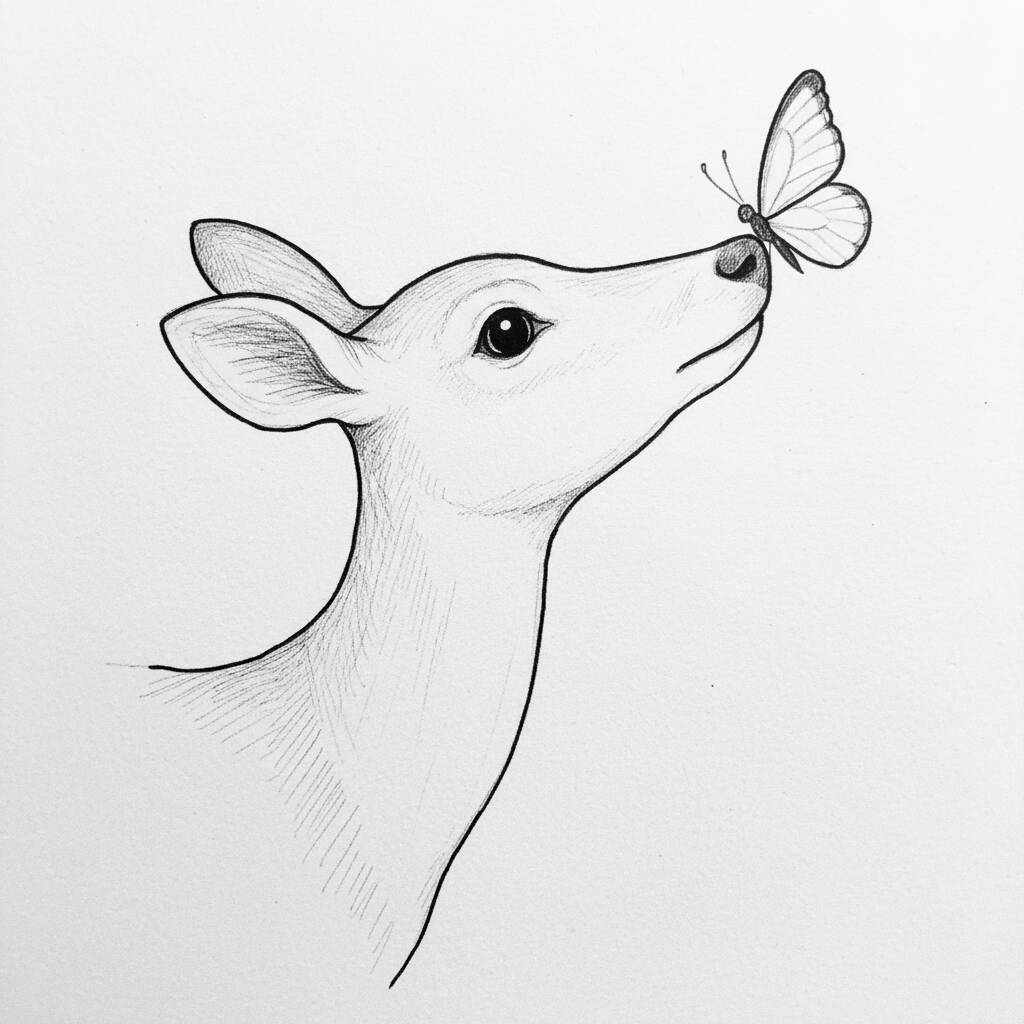 Desenho Fácil: desenho de um cervo com uma borboleta