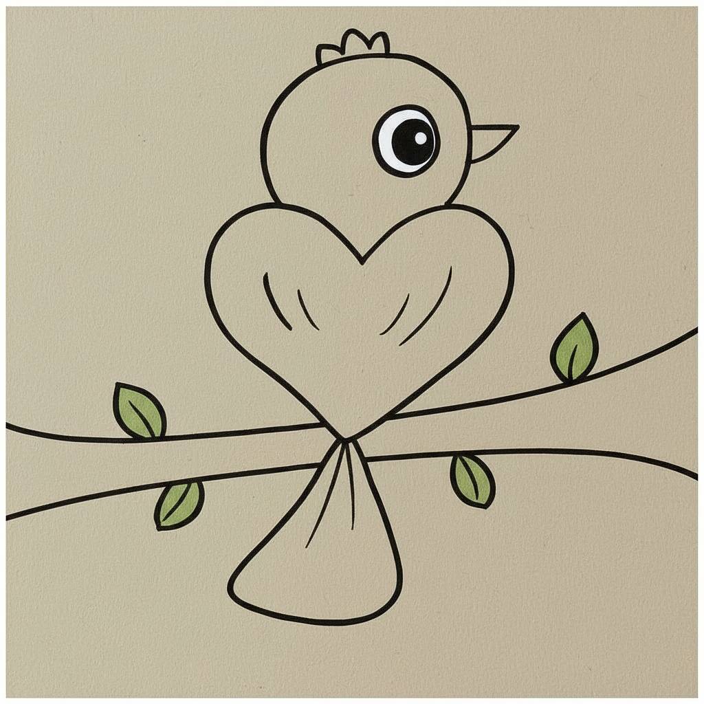 Desenho Fácil: desenho de um passarinho em forma de coração