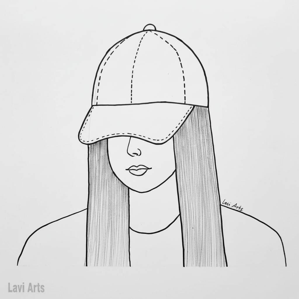 Início » Desenhos Para Colorir » Desenho Fácil: desenho de uma garota com boné fácil