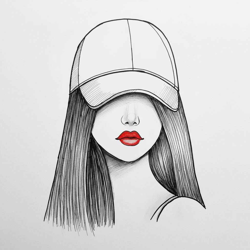 Desenho Fácil: mulher com boné e lábios vermelhos para colorir
