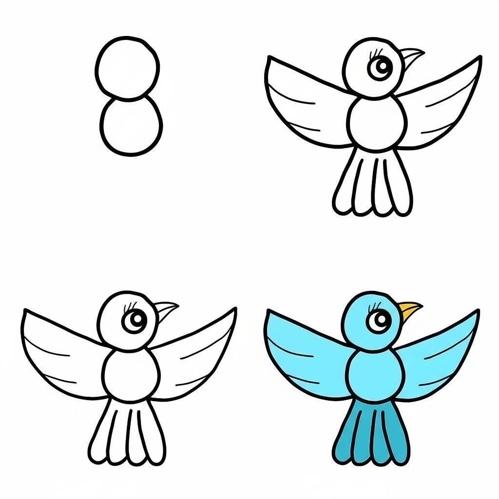Uma página de colorir divertida e simples com um pássaro que pode ser colorido em várias etapas.