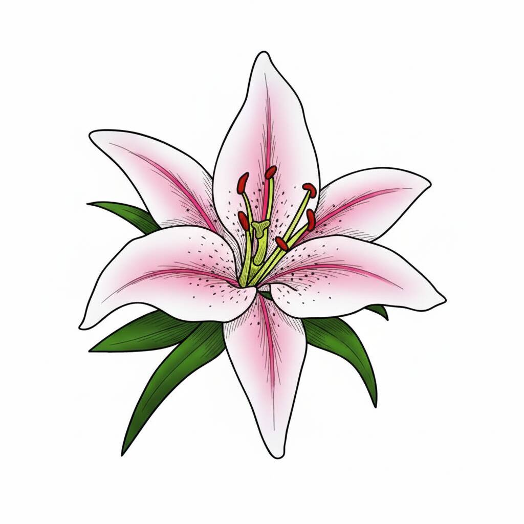 Uma página de colorir com um belo desenho de flor de lírio, perfeita para crianças e adultos que adoram arte e relaxamento.