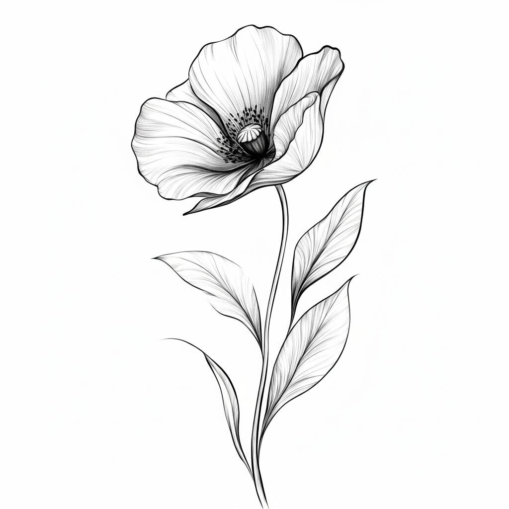Uma bela página de colorir com um desenho detalhado de uma flor de papoila, perfeita para crianças e adultos que amam arte.