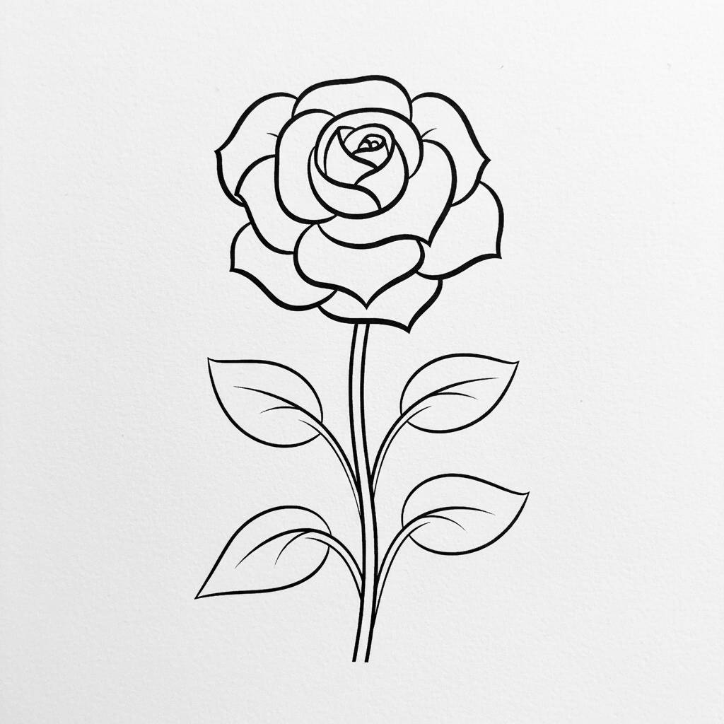 Uma linda página de colorir com um desenho de flor de rosa, ideal para crianças e amantes de artesanato.