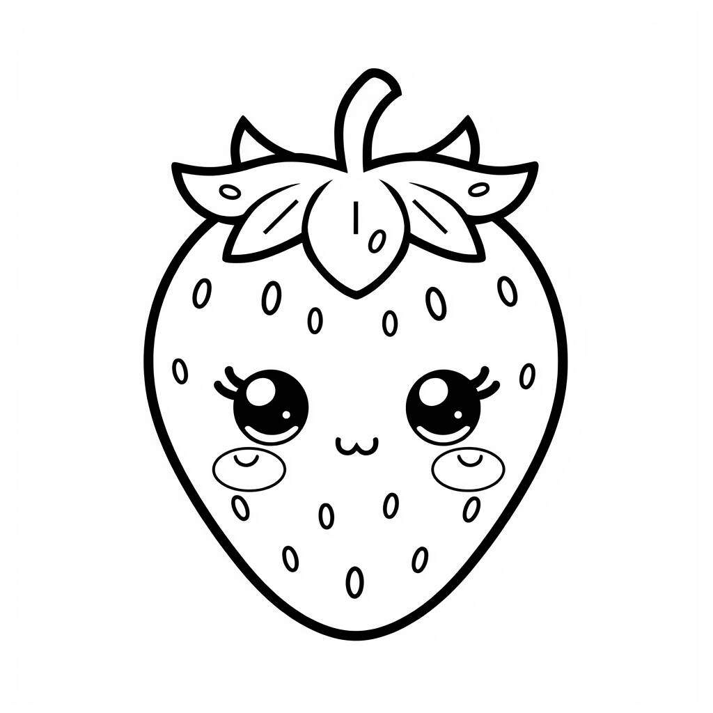 No desenho Kawaii de Moranguinho para colorir, a adorável moranguinho ganha vida com seu rostinho simpático e folhas verdes que a cercam. Para começar, pinte a moranguinho em um tom vibrante de vermelho, destacando suas pequenas sementes em amarelo ou dourado. As folhas podem ser coloridas em um verde fresco, trazendo um ar de primavera e alegria ao desenho, perfeito para todas as idades.