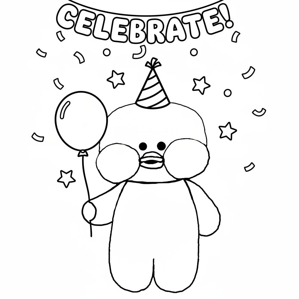 Página de colorir do Paper Duck em uma festa, ideal para crianças se divertirem e desenvolverem a criatividade.