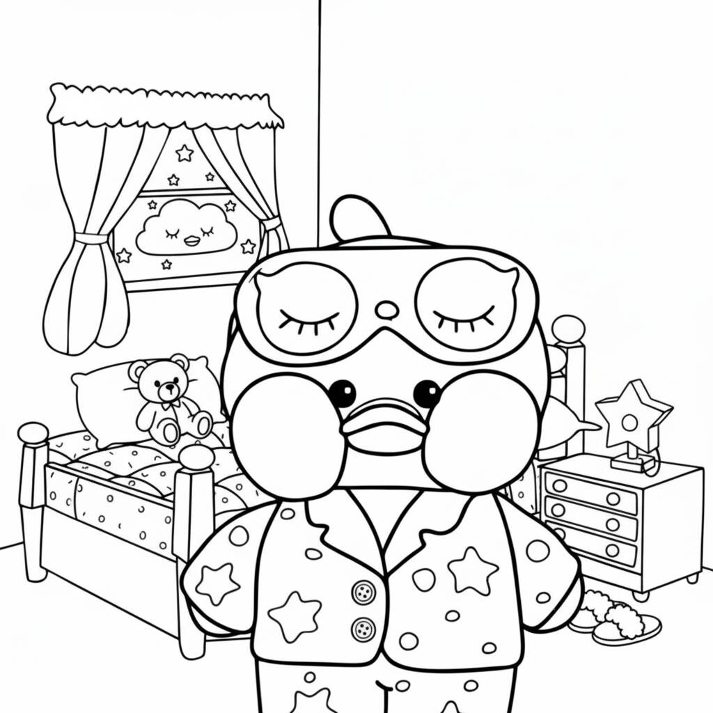 Página de colorir divertida do Paper Duck vestido de pijama, ideal para crianças.