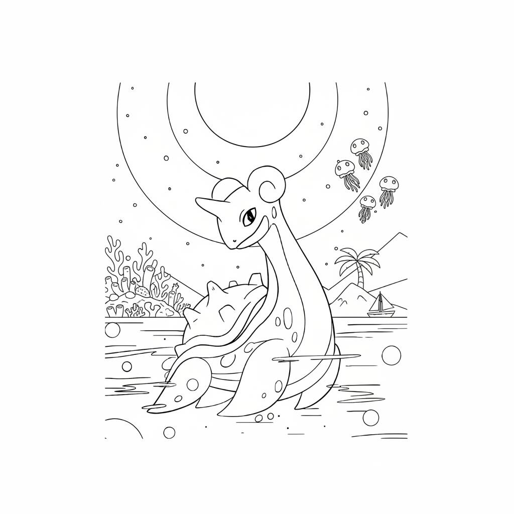 Página de colorir do Pokémon Lapras, perfeita para fãs de todas as idades.