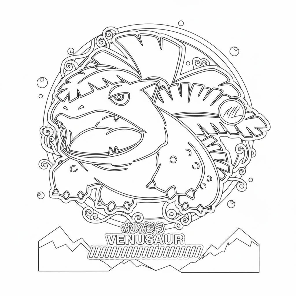 Uma página de colorir do Pokémon Venusaur, perfeita para os amantes de Pokémon e arte.