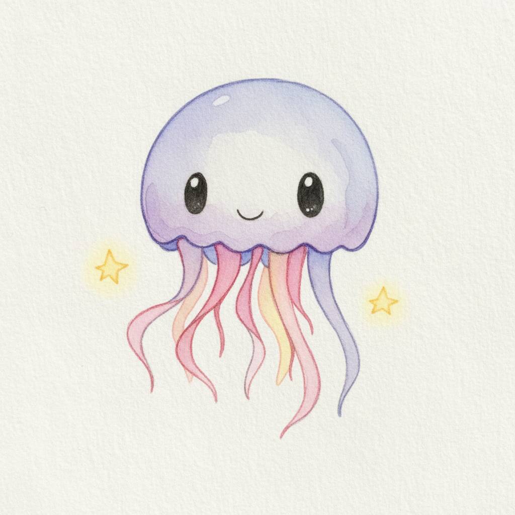 Colorir uma adorável água-viva com cores vibrantes.