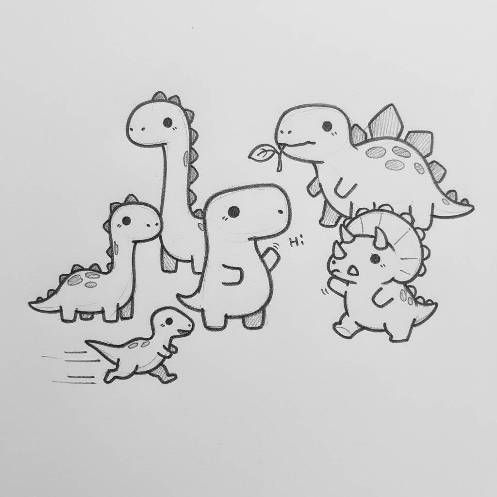 Uma encantadora página de colorir com dinossauros adoráveis, perfeita para crianças e amantes de desenhos legais.