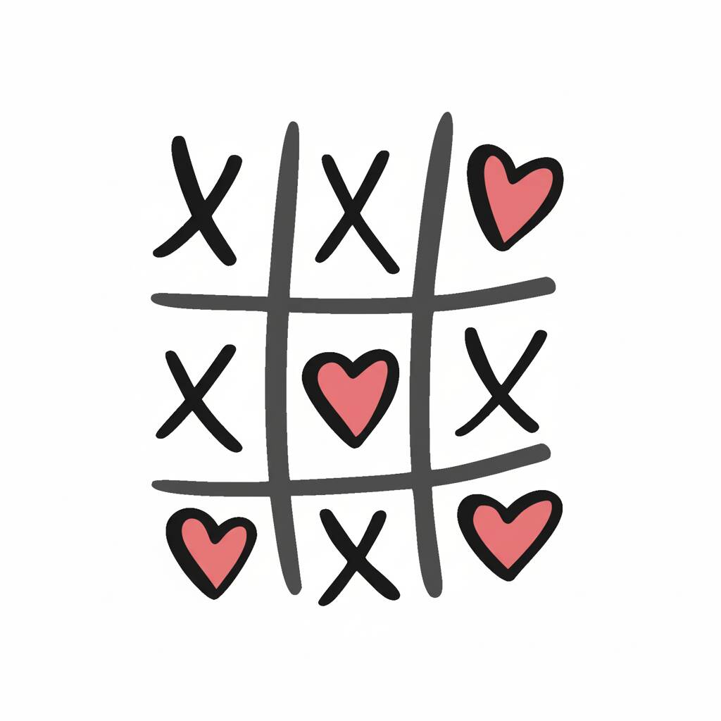 Início » Desenhos Para Colorir » Doodles para Desenhar: jogo da velha divertido com corações para desenhar