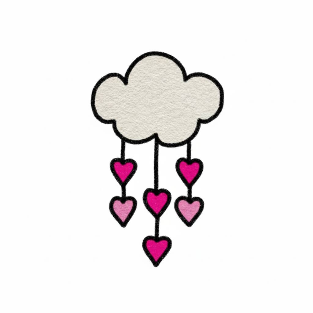 Doodles para Desenhar: nuvem fofa com corações pendurados para desenhar