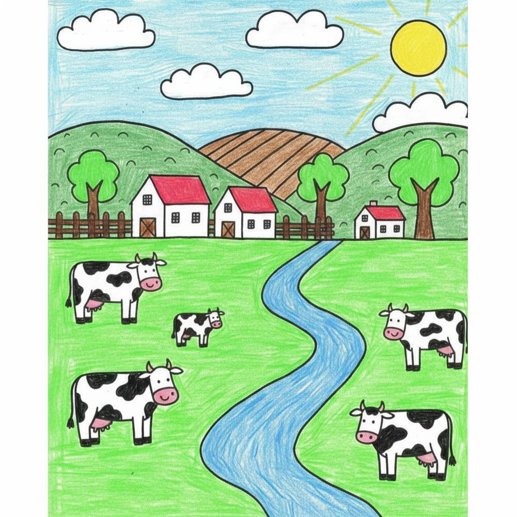 Paisagem para Desenhar: desenho de paisagem montanhosa com cachoeira e casa